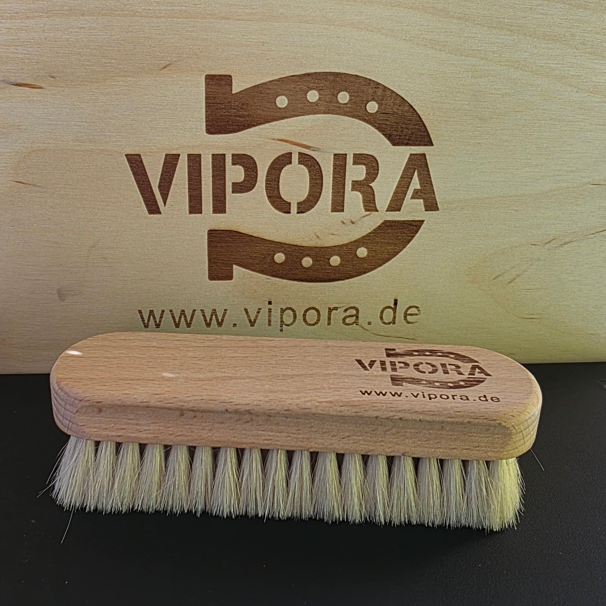 Die Hobby Horse Bürste vereint hochwertiges, unbehandeltes heimisches Buchenholz mit feinem Ziegenfell für eine schonende Pflege. Mit seitlichen Griffkehlen für optimalen Halt liegt die Bürste sicher in der Hand. Die Borstenlänge beträgt 20 mm, bei einer Gesamtgröße von 13,5 cm Länge und 4,1 cm Breite. Mit einem Gewicht von nur 71 Gramm ist sie leicht und handlich. Made in Germany steht sie für präzise Verarbeitung und langlebige Qualität – ideal für anspruchsvolle Reiter, die Wert auf natürliche Materialien und Funktionalität legen.